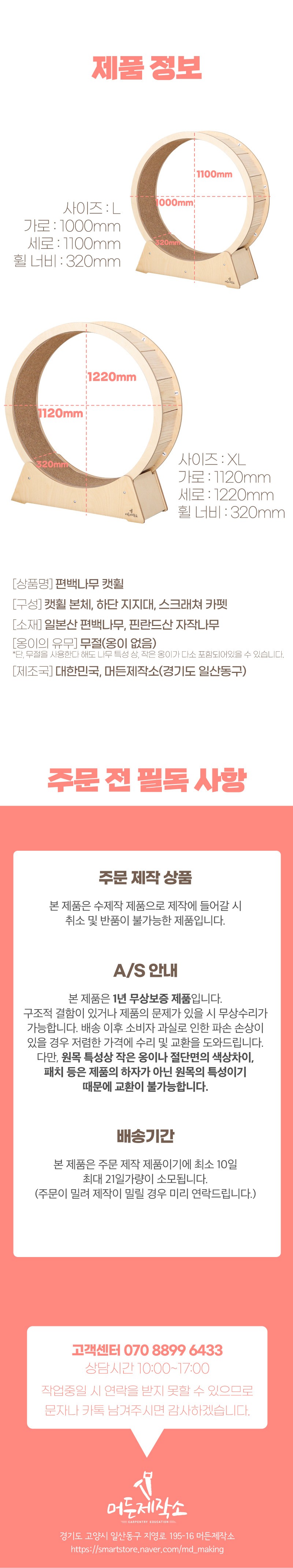 머든제작소]편백 무소음 캣휠